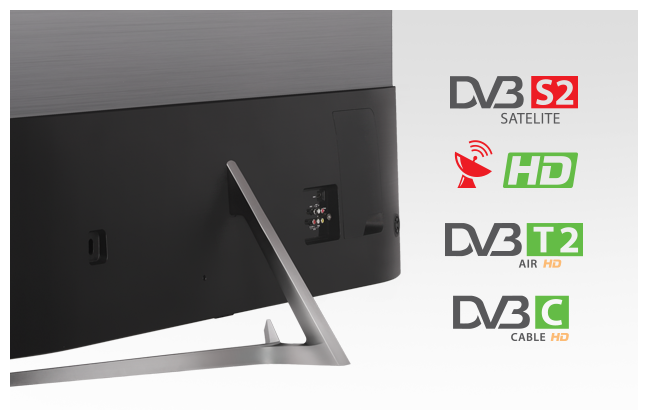 - Поддержка цифрового ТВ: DVB-T2, DVB-C, DVB-S, DVB-S2, DVB-T