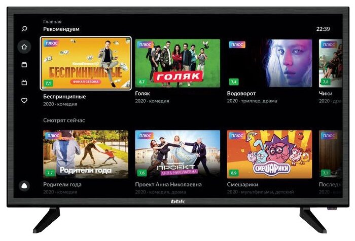 разрешение: 720p HD (1366x768); диагональ экрана: 32"; частота обновления экрана: 50 Гц; мощность звука: 20 Вт (2x10 Вт); платформа Smart TV: Яндекс.ТВ; беспроводные интерфейсы: Wi-Fi 802.11b, 802.11g, 802.11n, Bluetooth; проводные интерфейсы: HDMI 1.4 x 3, USB x 2, Ethernet, выход аудио коаксиальный, выход на наушники; крепление VESA: 100×100 мм; размеры без подставки (ШxВxГ): 735x433x74 мм; размеры с подставкой (ШxВxГ): 735x469x208 мм