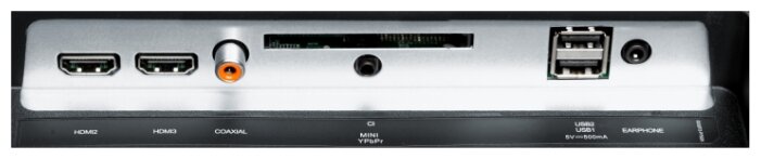 - Входы: AV, аудио x2, компонентный, VGA, HDMI x3, USB x2, Ethernet (RJ-45), Wi-Fi 802.11n