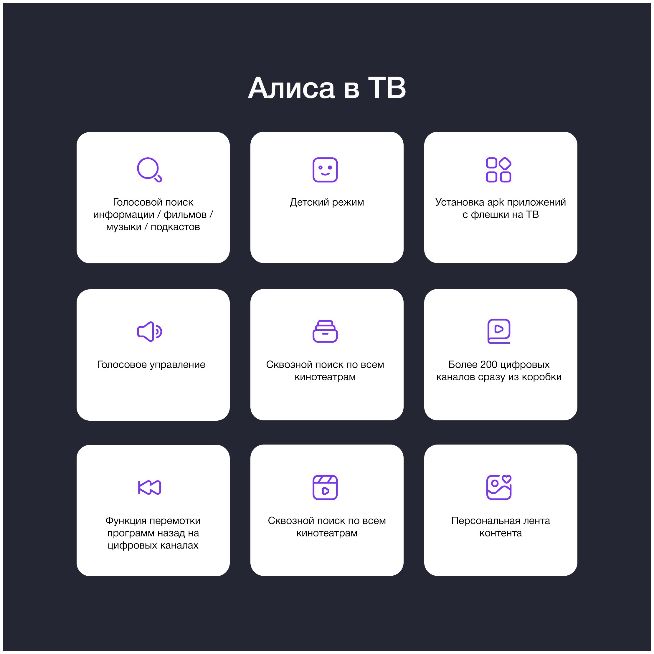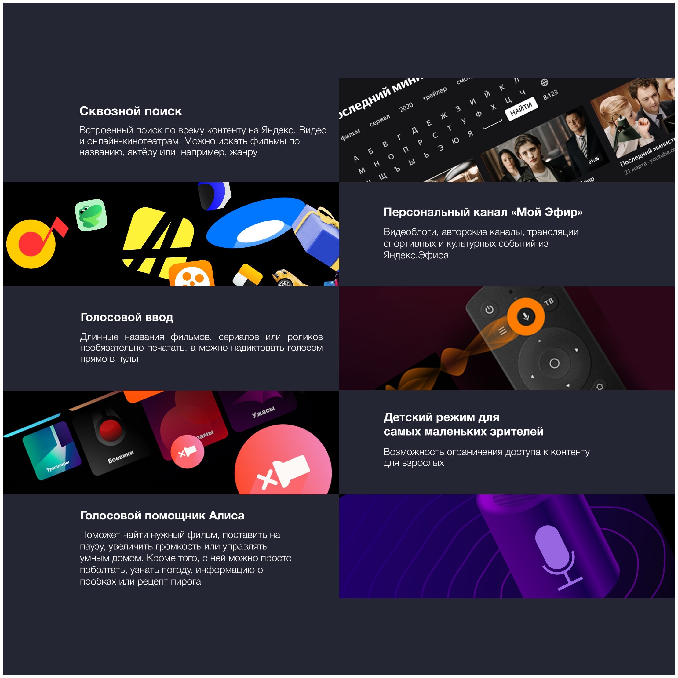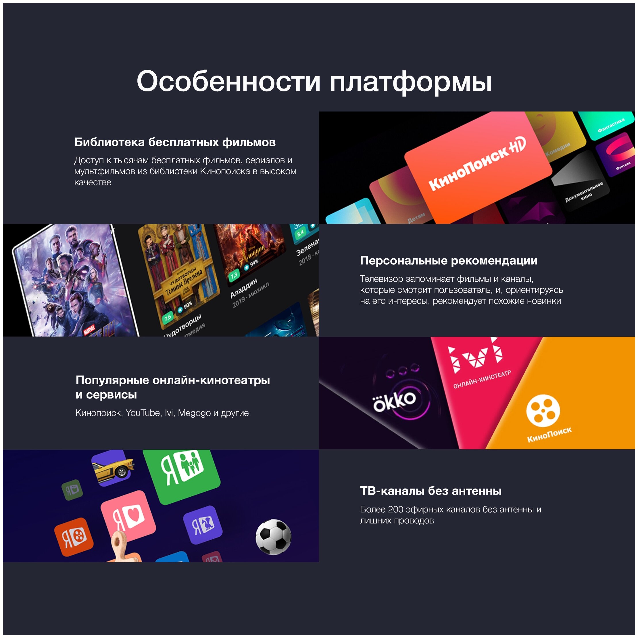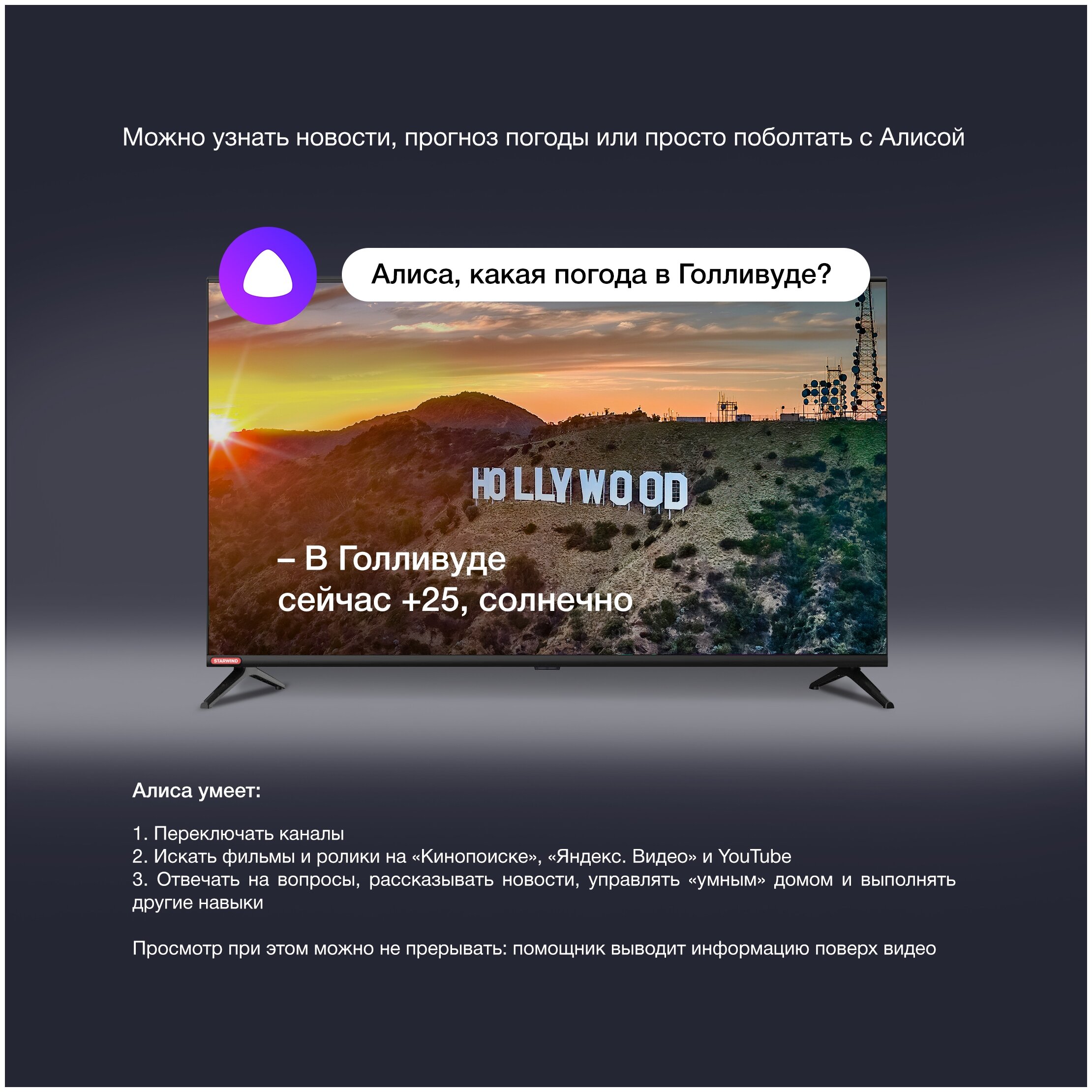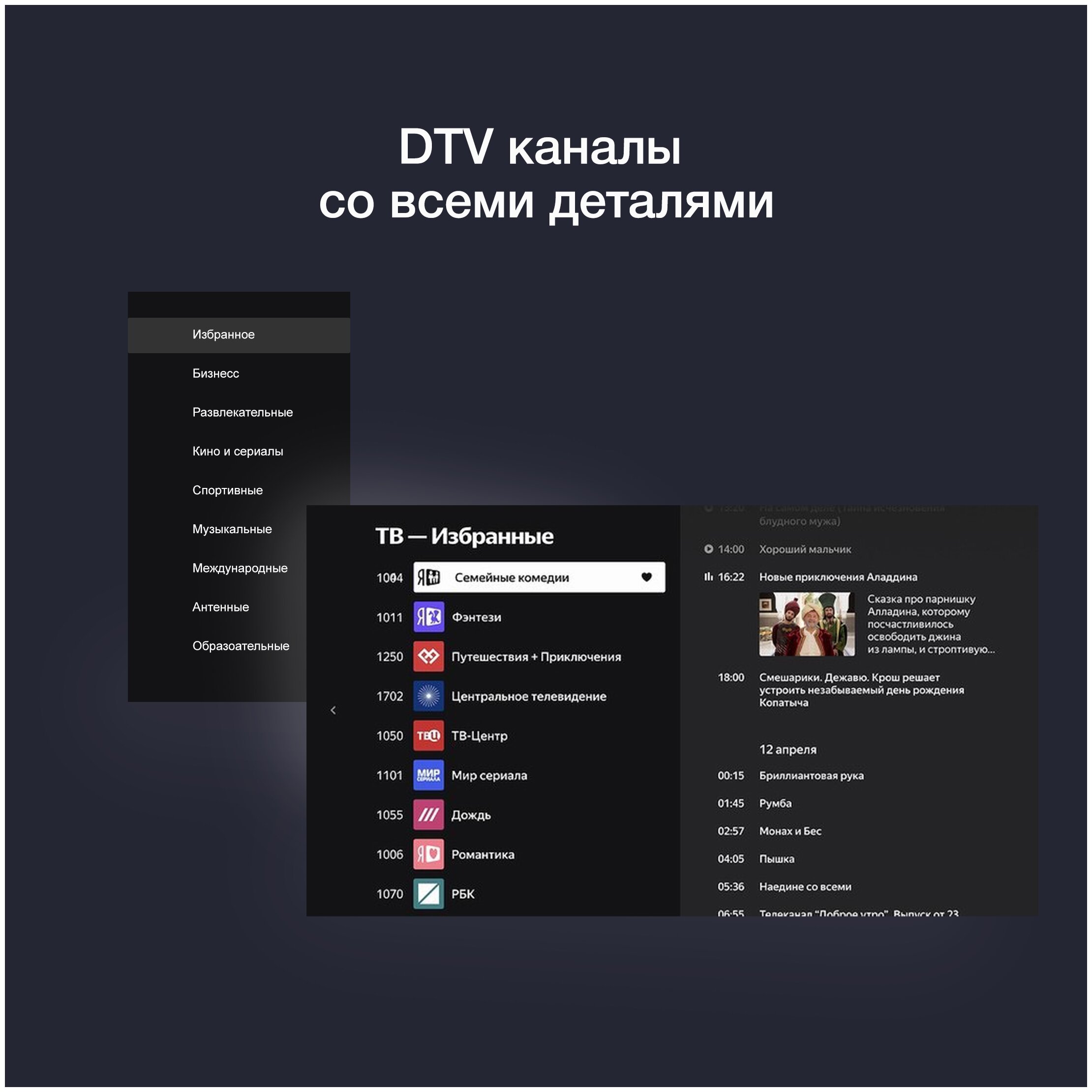 диагональ: 40"-45", диагональ (точно): 40 ", Разрешение HD: Full HD, частота обновления экрана: 60 Гц, технология экрана: LED, Поддержка цифрового ТВ: DVB-C, DVB-S, DVB-S2, DVB-T, DVB-T2, Платформа Smart TV: Яндекс ТВ, беспроводная связь: Bluetooth, Wi-Fi, Количество входов HDMI: 3, особенности: DLNA, таймер сна