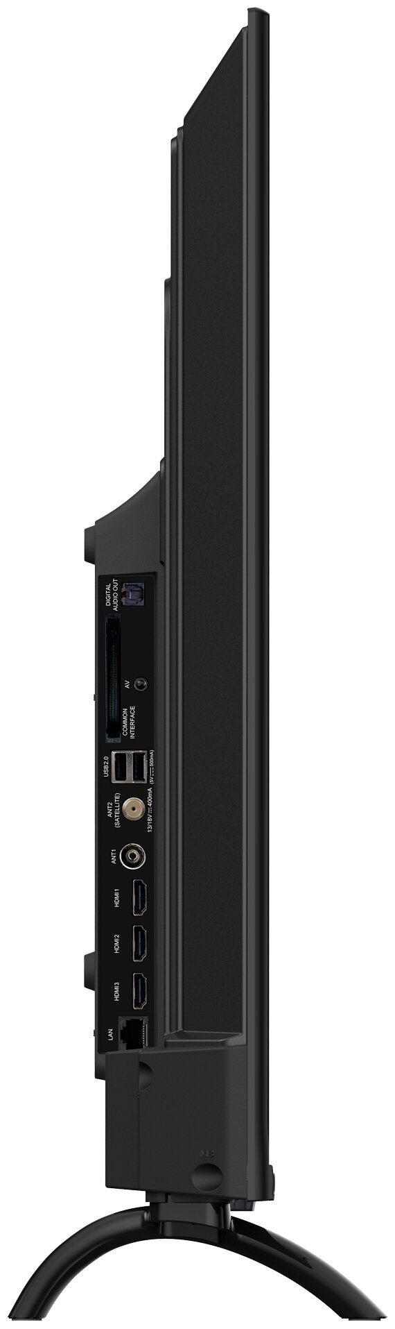 • Разъемы и интерфейсы: Ethernet - RJ-45, композитный видеовход, вход HDMI x 3, USB Type-A x 2, слот CI/CI+, выход аудио коа