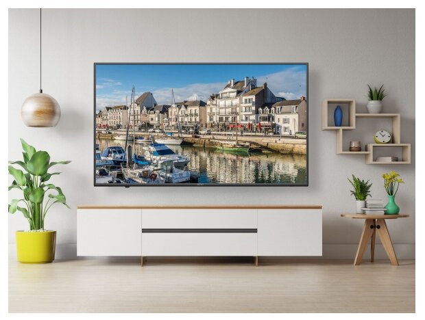 4K UHD (3840x2160), HDR; диагональ экрана 55", TFT IPS; частота обновления экрана 50 Гц; Smart TV (Android TV), Wi-Fi; мощность звука 24 Вт (2х12 Вт); тип подсветки: Direct LED; поддержка DVB-T2; HDMI x4, USB x3, Bluetooth, Ethernet; настенное крепление (VESA) 400×200 мм; 1238x776x269 мм
