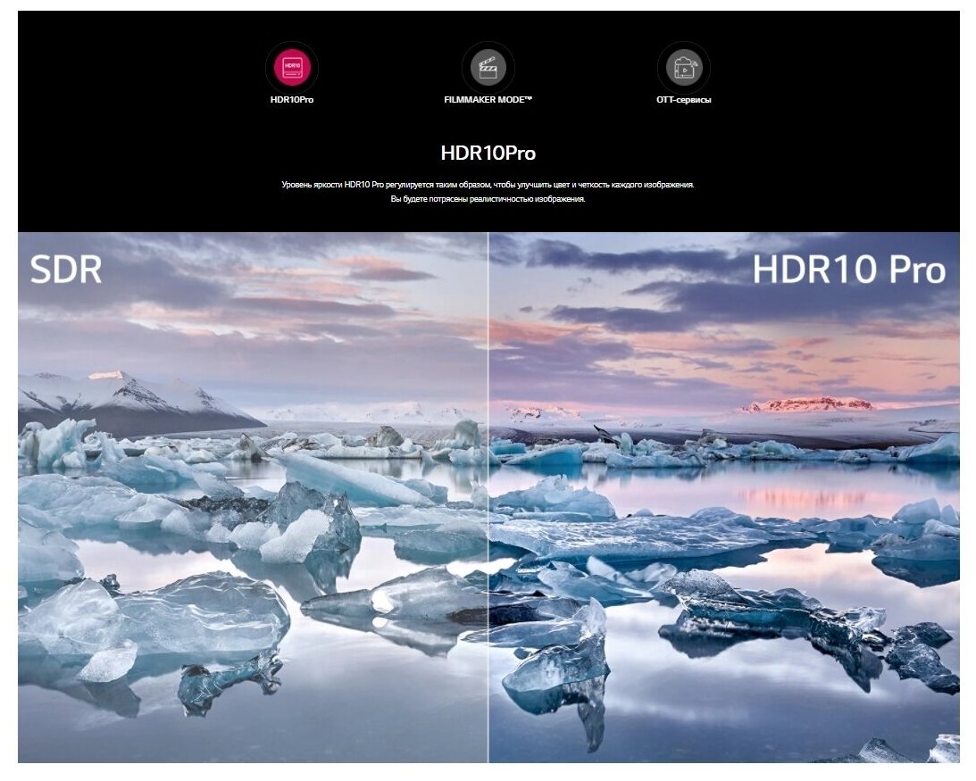 диагональ: 50"-57", диагональ (точно): 55 ", Разрешение HD: 4K UHD, частота обновления экрана: 60 Гц, технология экрана: HDR, LED, Поддержка цифрового ТВ: DVB-T2, DVB-C, DVB-S, DVB-S2, DVB-T, аналоговый (PAL, SECAM, NTSC), Платформа Smart TV: webOS, беспроводная связь: Airplay, Wi-Fi, Bluetooth, Экосистема Умного дома: Apple HomeKit, Количество входов HDMI: 3, особенности: универсальный (мультибрендовый) пульт, гостиничный ТВ, защита от детей, датчик освещенности, год создания модели: 2022
