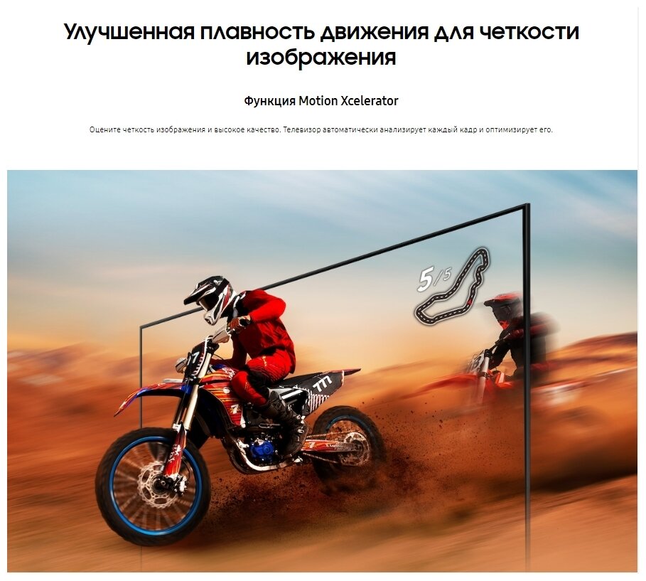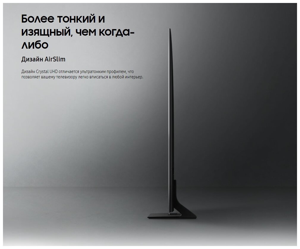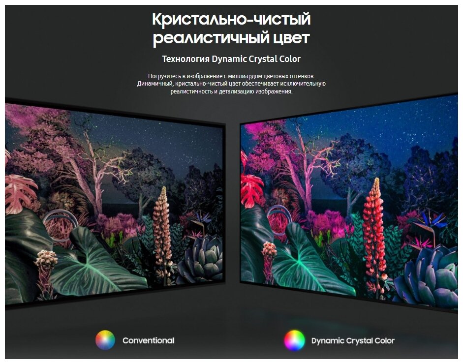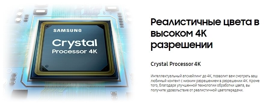 • Дополнительная информация: процессор Crystal 4K; тип затемнения UHD Dimming; ОС Tizen 6.0; поддержка Wireless DeX; игровой режи
