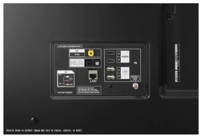 - Входы: AV, компонентный, HDMI x4, USB x3, Ethernet (RJ-45), Bluetooth, Wi-Fi 802.11ac, Miracast