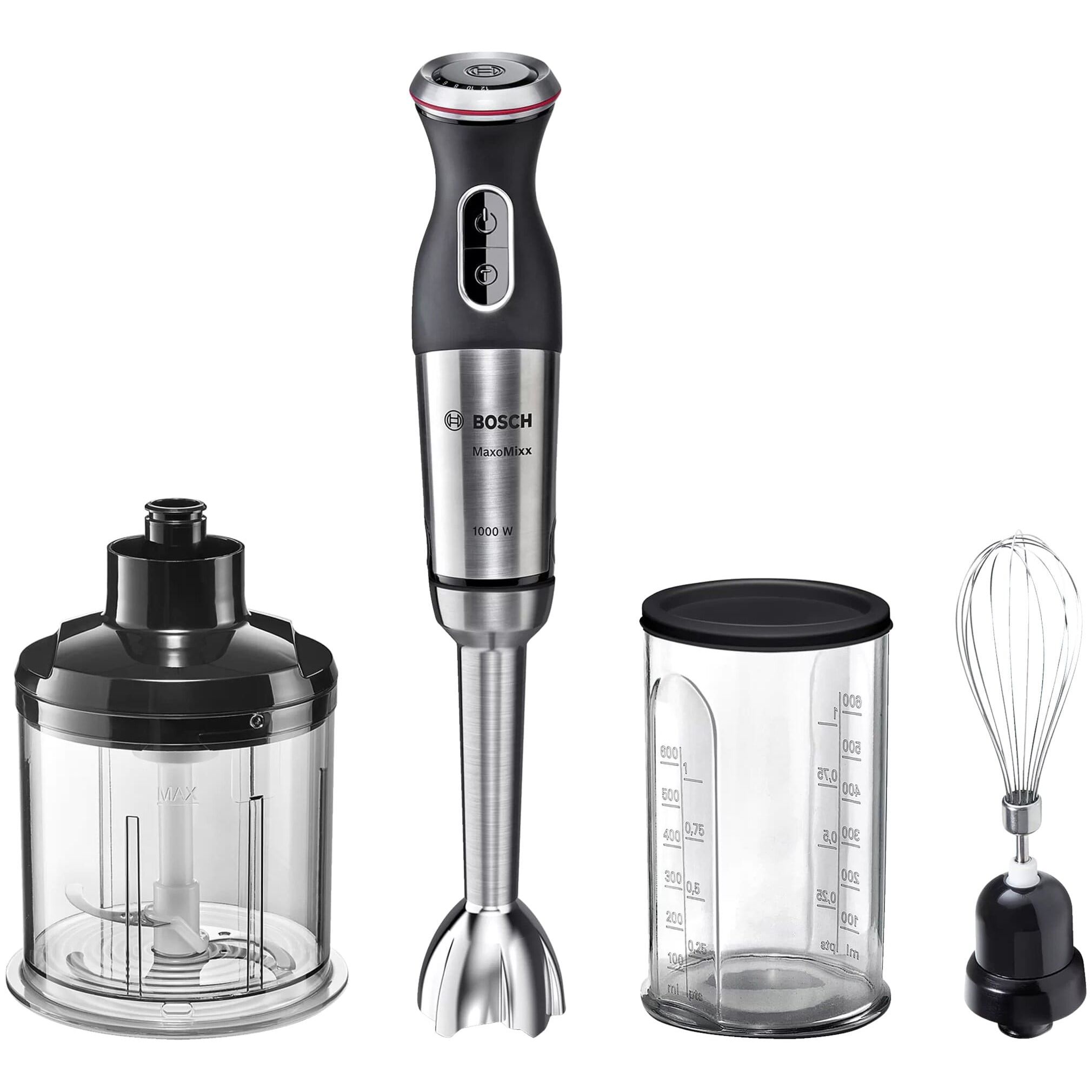 Общие Характеристики: ; Тип ; погружной ; Максимальная мощность ; 1000 Вт ; Управление ; механическое ; Количество скоростей ; 12 ; Функциональные возможности ; Режимы ; турборежим ; Дополнительные функции ; колка льда ; Насадки ; венчик для взбивания, измельчитель ; Емкость измельчителя ; 0.75 л ; Емкость мерного стакана ; 0.6 л ; Особенности ; В комплекте ; мерный стакан ; Длина сетевого шнура ; 1.4 м ; Вес ; 1.58 кг ; Дополнительная информация ; нож QuattroBlade Pro с 4-мя лезвиями; эргономичная форма рукоятки блендера с мягким антискользящим покрытием и большими кнопками; запатентованный механизм Bosch «Click» помогает без усилий прикреплять и отсоединять ножку блендера и аксессуары; ножку блендера, мерный стакана, измельчитель и венчик можно мыть в посудомоечной машине; в комплекте есть крышка для длительного хранения в холодильнике; венчик из нержавеющей стали