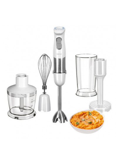 максимальная мощность: 1200 Вт; управление: механическое; измельчитель: 0.5 л; мерный стакан: 0.6 л; материал корпуса: пластик; количество скоростей: 5; особенности: плавная регулировка скорости; дополнительные режимы: турборежим