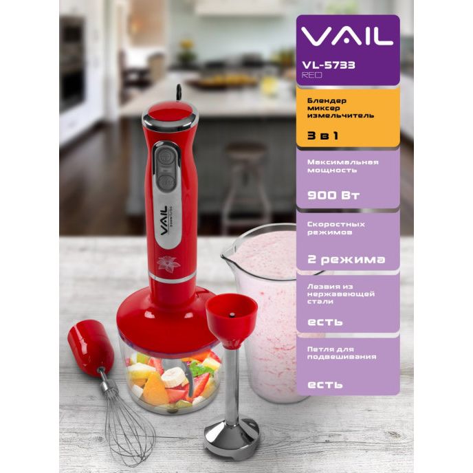 Блендер погружной Vail VL-5733 красный