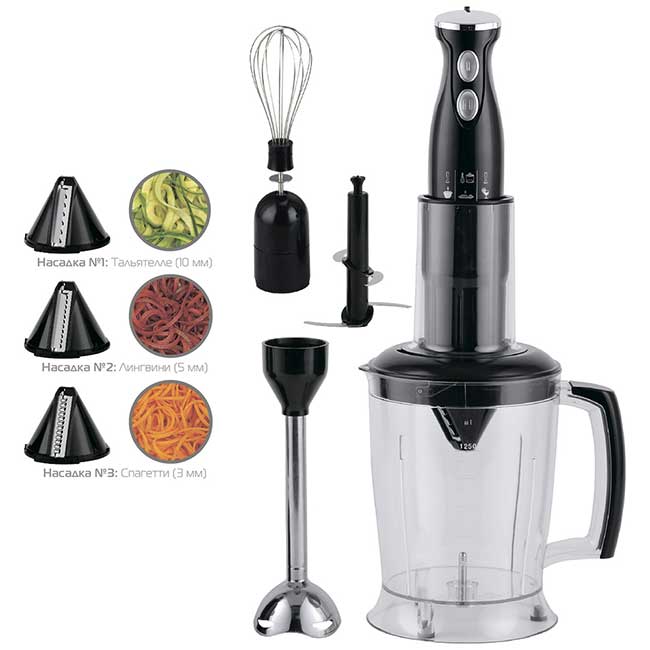 максимальная мощность: 950 Вт; механическое управление; измельчитель, емкость 1.25 л; корпус из пластика