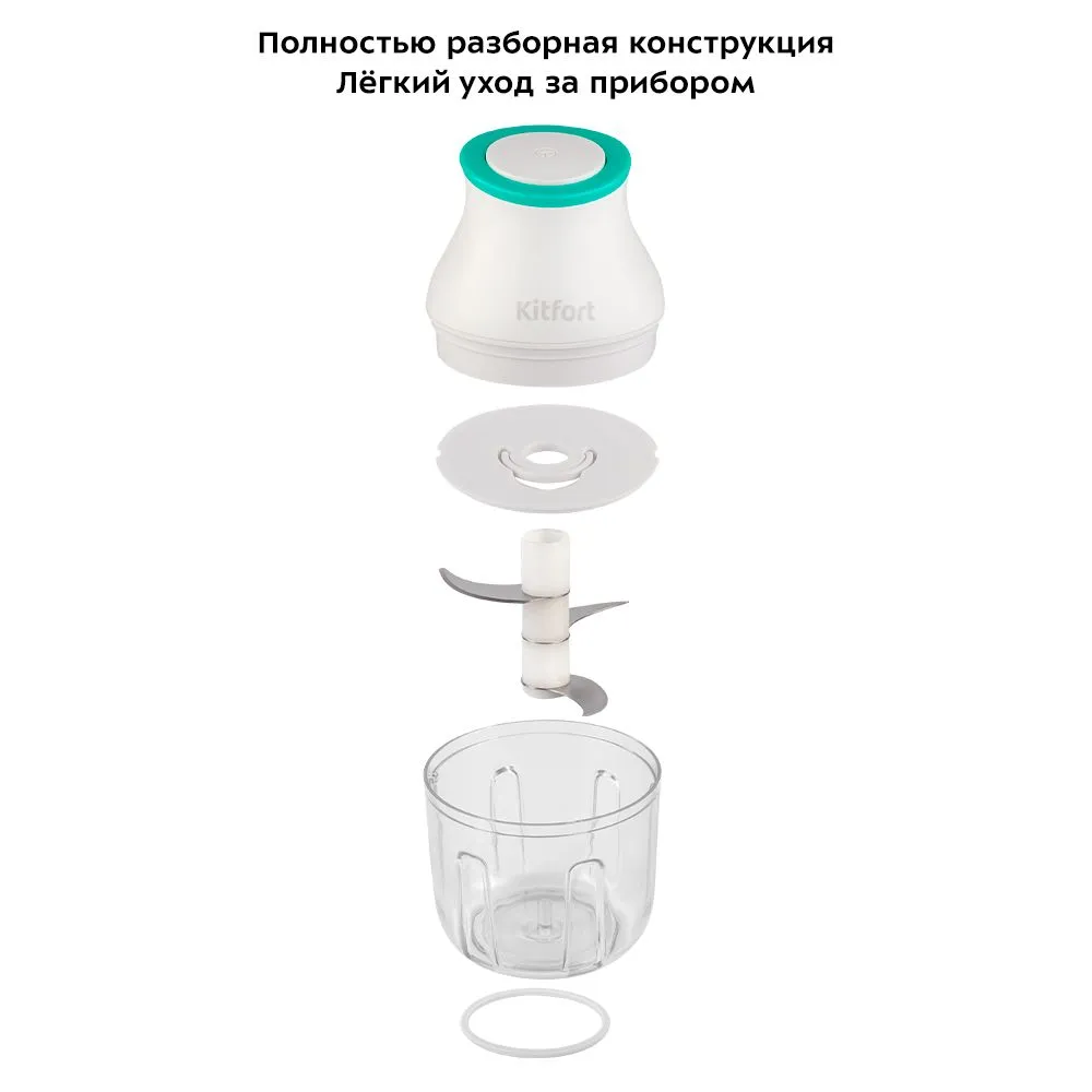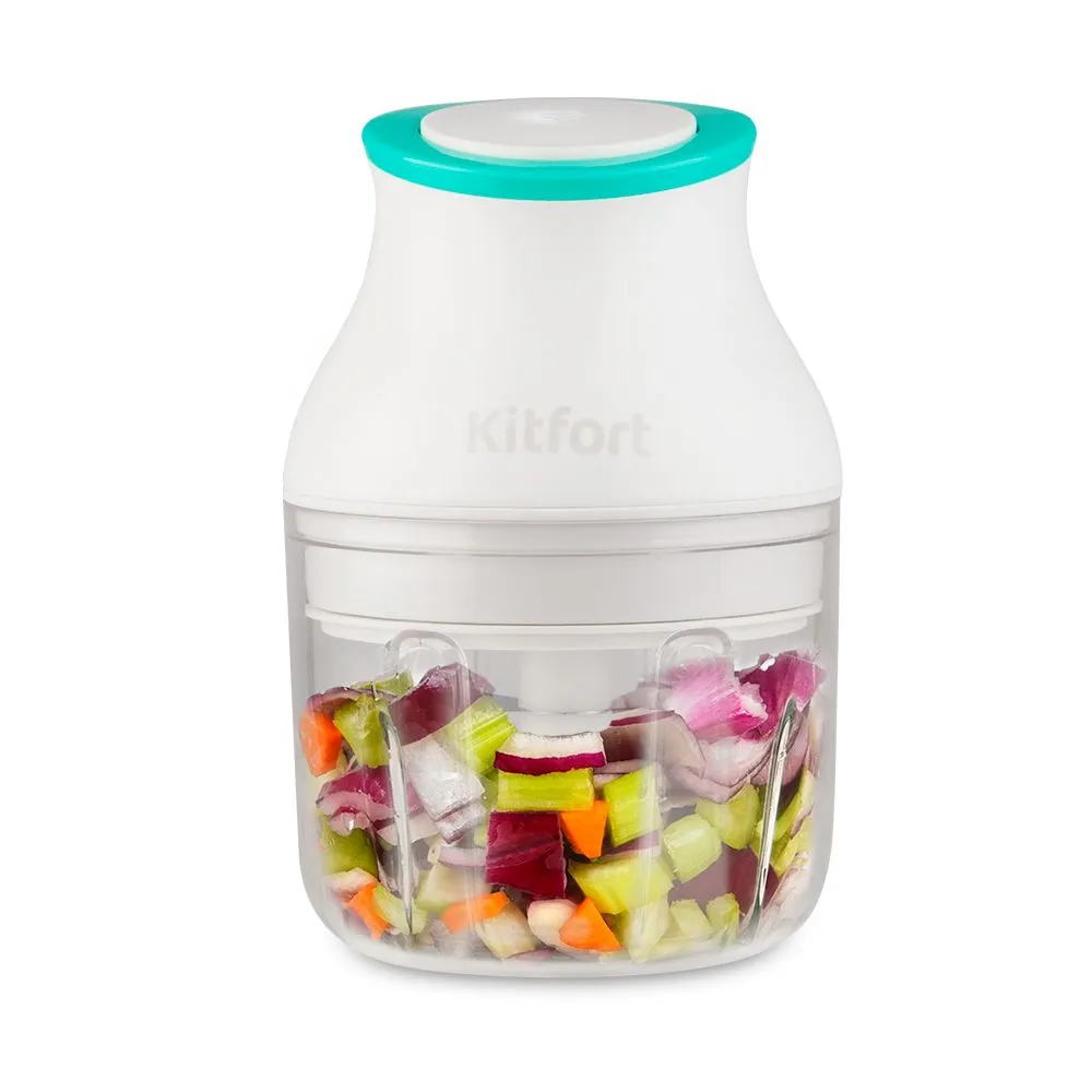 Портативный измельчитель - прибор для быстрого измельчения мяса, твердого сыра, овощей, трав, чеснока, ягод и других продуктов. Чаша ёмкостью 170 мл изготовлена из прозрачного пластика, вы можете легко контролировать степень измельчения.; Тройной нож измельчает ингредиенты практически по всей высоте чаши. Лезвия изготовлены из высококачественной нержавеющей стали, скорость вращения ножей измельчителя - 1600 об/мин. Любимое блюдо будет готов за считанные минуты!; Для управления прибором просто нажмите на кнопку на верхней части моторного блока. Степень измельчения продуктов регулируется длительностью нажатия на кнопку. Благодаря силиконовому кольцу на дне чаши, измельчитель меньше скользит по столу.; Конструкция измельчителя полностью разбирается, так что его легко разобрать и вымыть после использования. Не используйте агрессивные моющие средства и хорошо просушите ножи после мытья. Готово! Измельчитель готов к новым кулинарным подвигам.; Мощность; 22 Вт; Максимальная скорость вращения ножей; 1600 об/мин ± 15