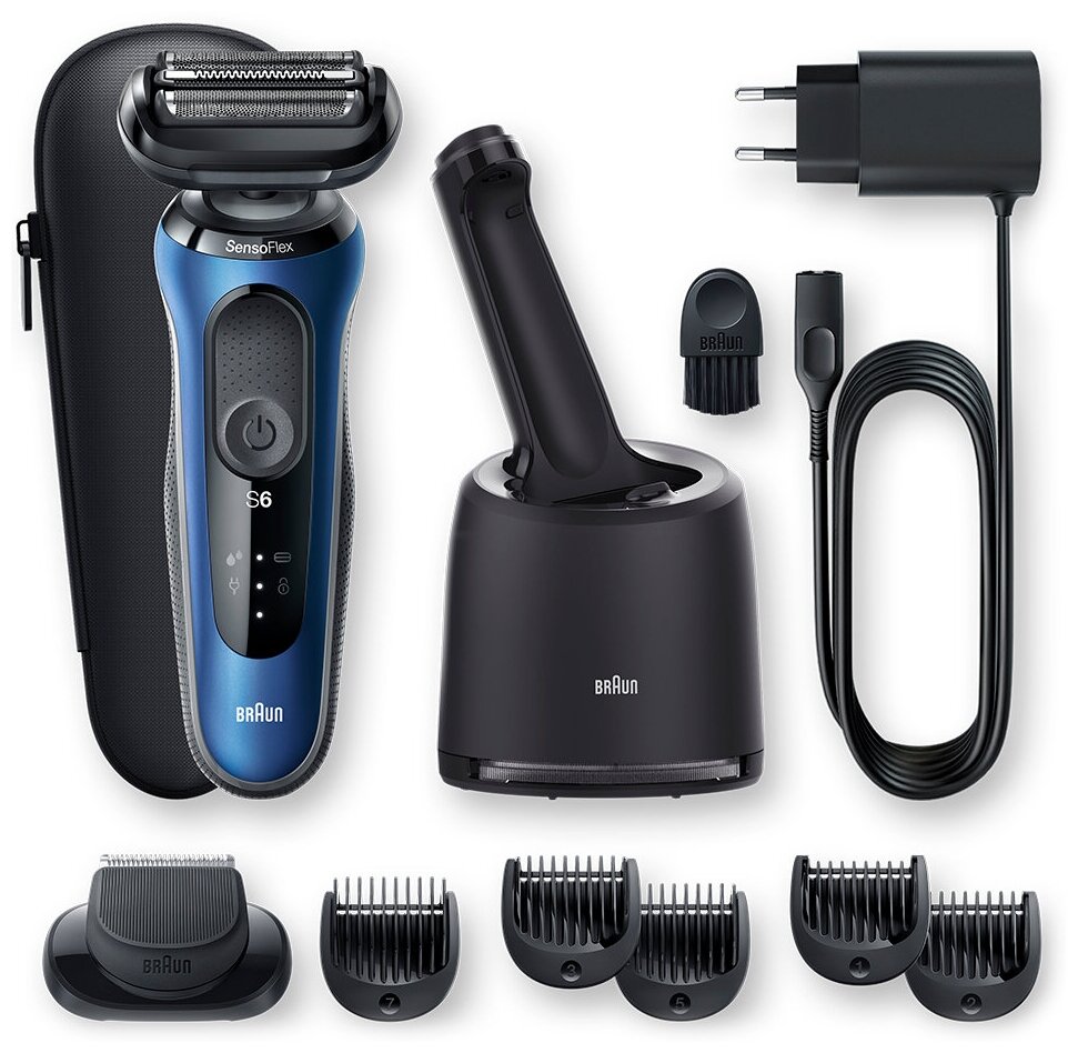 - Подробная комплектация: электробритва Braun Series 6 60-B7200cc Blue, умная станция очистки и подзарядки SmartCare, чистящий