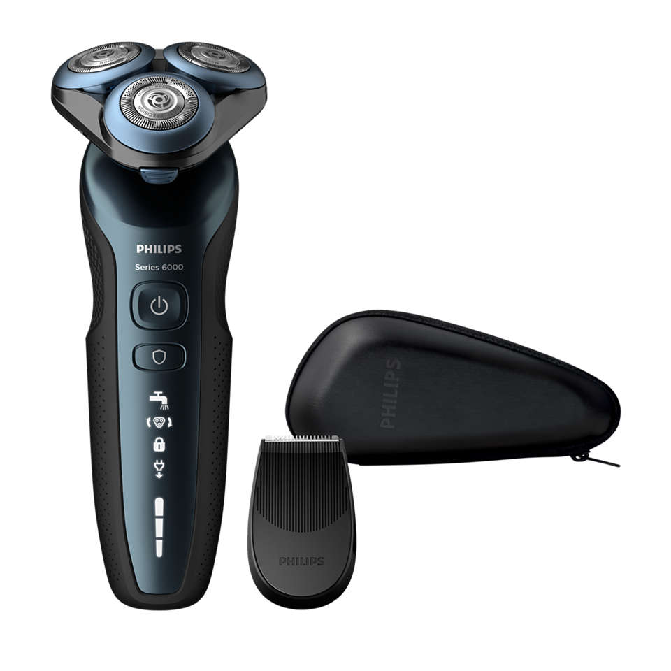 роторная система бритья; сухое / влажное бритье; плавающие головки; 3 бритвенные головки; водонепроницаемый корпус; автономное питание; время автономной работы до 60 мин; триммер