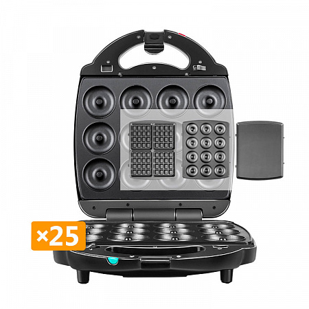 - Дополнительная информация: панель для вафель на 4 порции; панель для пончиков на 12 порций; открытие крышки на 180°