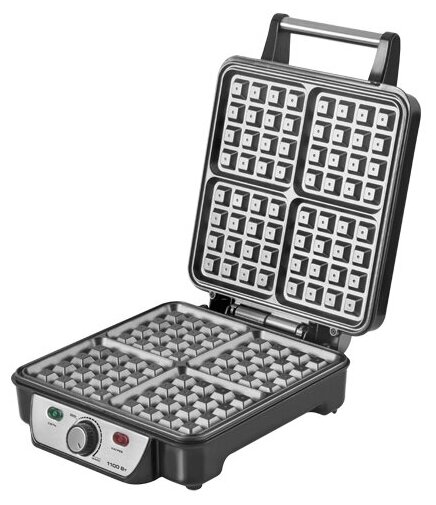 вафельница, мощность 1100 Вт, механическое управление, материал корпуса: металл и пластик, регулировка температуры