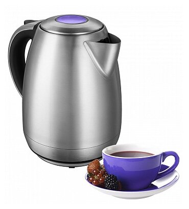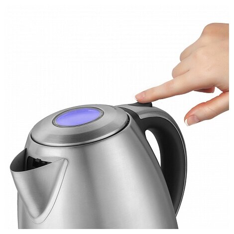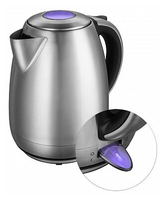 объем 1.7 л; мощность 2000 Вт; индикация включения; закрытая спираль; установка на подставку в любом положении; стальной корпус; подсветка корпуса; вес 1.18 кг