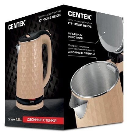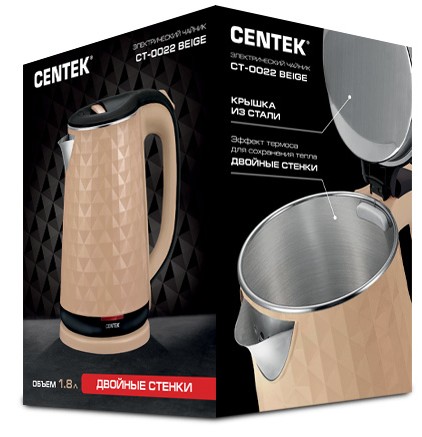 Чайник Centek CT-0022 Beige 1.8л <2000W> двойной корпус - сталь+пластик