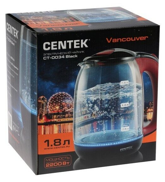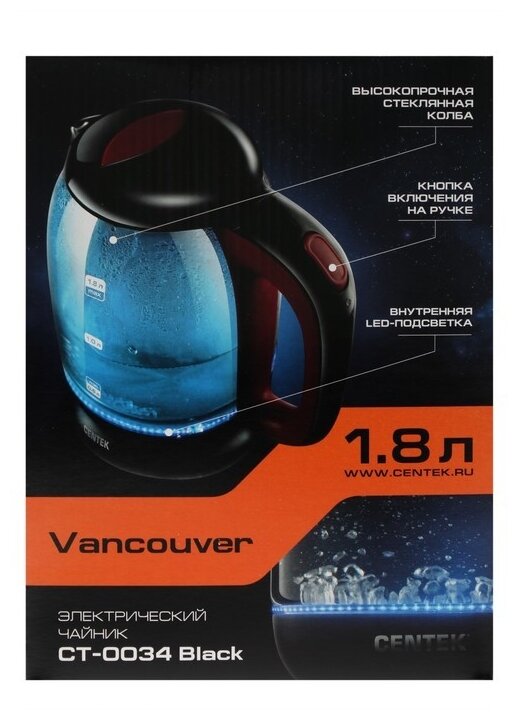 тип: чайник, материал корпуса: пластик/стекло, объем: 1.80 л, тип нагревательного элемента: закрытая спираль, особенности: вращение на 360 градусов, индикатор уровня воды, отсек для хранения шнура