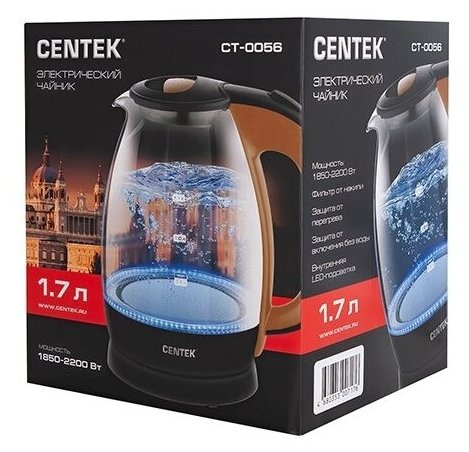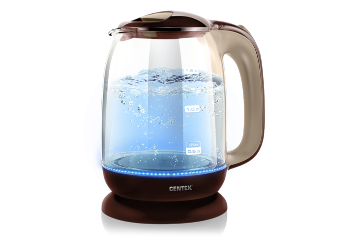 Чайник Centek CT-0034 Coffee стекло, 1.8л, 2200Вт, внутренняя LED подсветка, кнопка