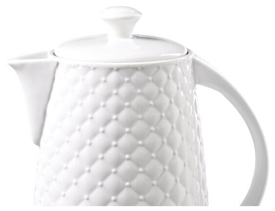 Выполняет свои прямые функции.Накипи минимум.Крышка с "крючком",при наливании не надо её придерживать.В отличии от пластиковых и металлических чайников от керамики нет выделения в воду,по крайней мере я на это надеюсь)