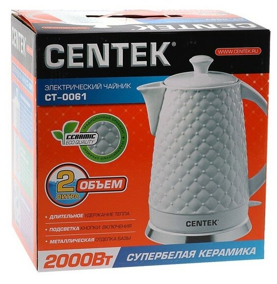 Вот какие тут могут быть комментарии?! Не знаю как белые чайники этой модели, не знаю как другие керамические чайники CENTEK, но я теперь буду покупать только железные и, точно не CENTEK!