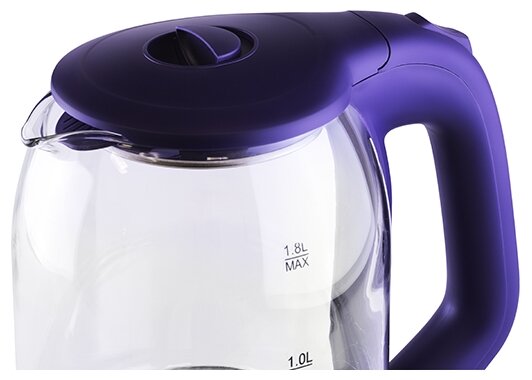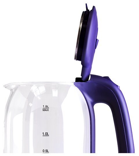 тип: чайник, материал корпуса: пластик/стекло, объем: 1.80 л, тип нагревательного элемента: закрытая спираль, особенности: вращение на 360 градусов, индикатор уровня воды, отсек для хранения шнура