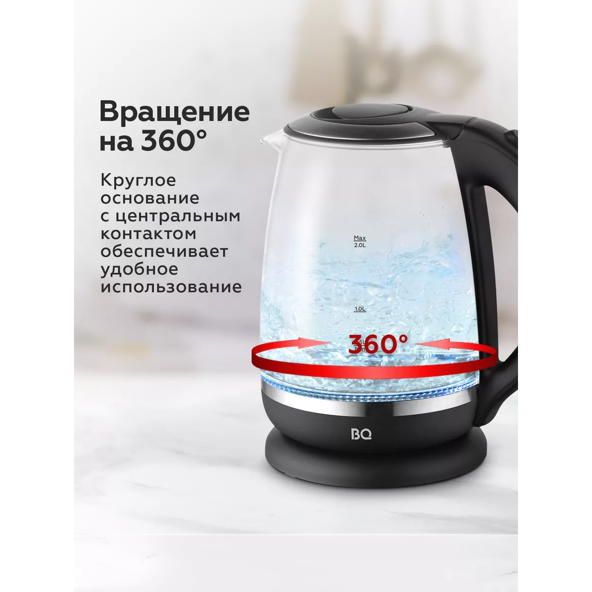 Характеристики : Тип управления : Механический : Индикация работы : Да : Автоотключение при недостаточном количестве воды : Да : Автоотключение при закипании : Да : Напряжение : 220-240 В 1850-2200 Вт : Объем : 2 л : Материал корпуса : Стекло : Вращение на подставке : 360° : Тип нагревательного элемента : Скрытый 304 нержавеющая сталь : Отсек для хранения электрошнура : Да : Длина электрошнура : 70-75 см : Мощность : 1850-2200 Вт : Защита от поражения электрическим током : Класс I : Размеры устройства : 220.3 x 244.9 x 160.1 мм : Вес нетто : 1 кг : Комплектация : Чайник, Подставка для чайника, Руководство по эксплуатации, Гарантийный талон ;