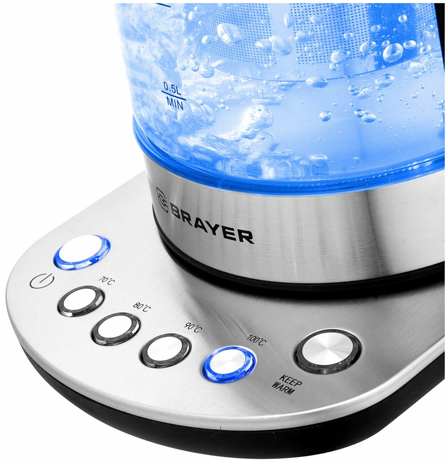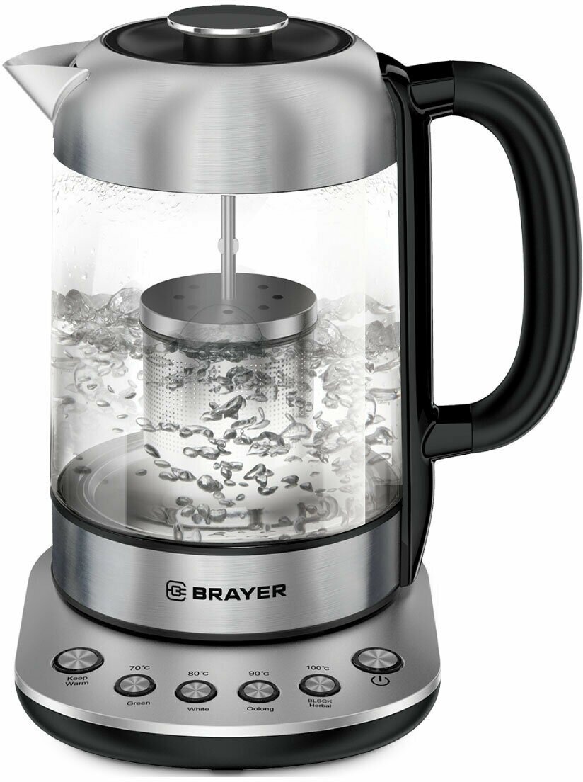 тип: чайник, материал корпуса: металл/стекло, объем: 1.70 л, тип нагревательного элемента: закрытый, дополнительные функции: поддержание тепла, Выбор температуры нагрева, особенности: заварочный чайник, индикатор уровня воды, индикация включения, фильтр