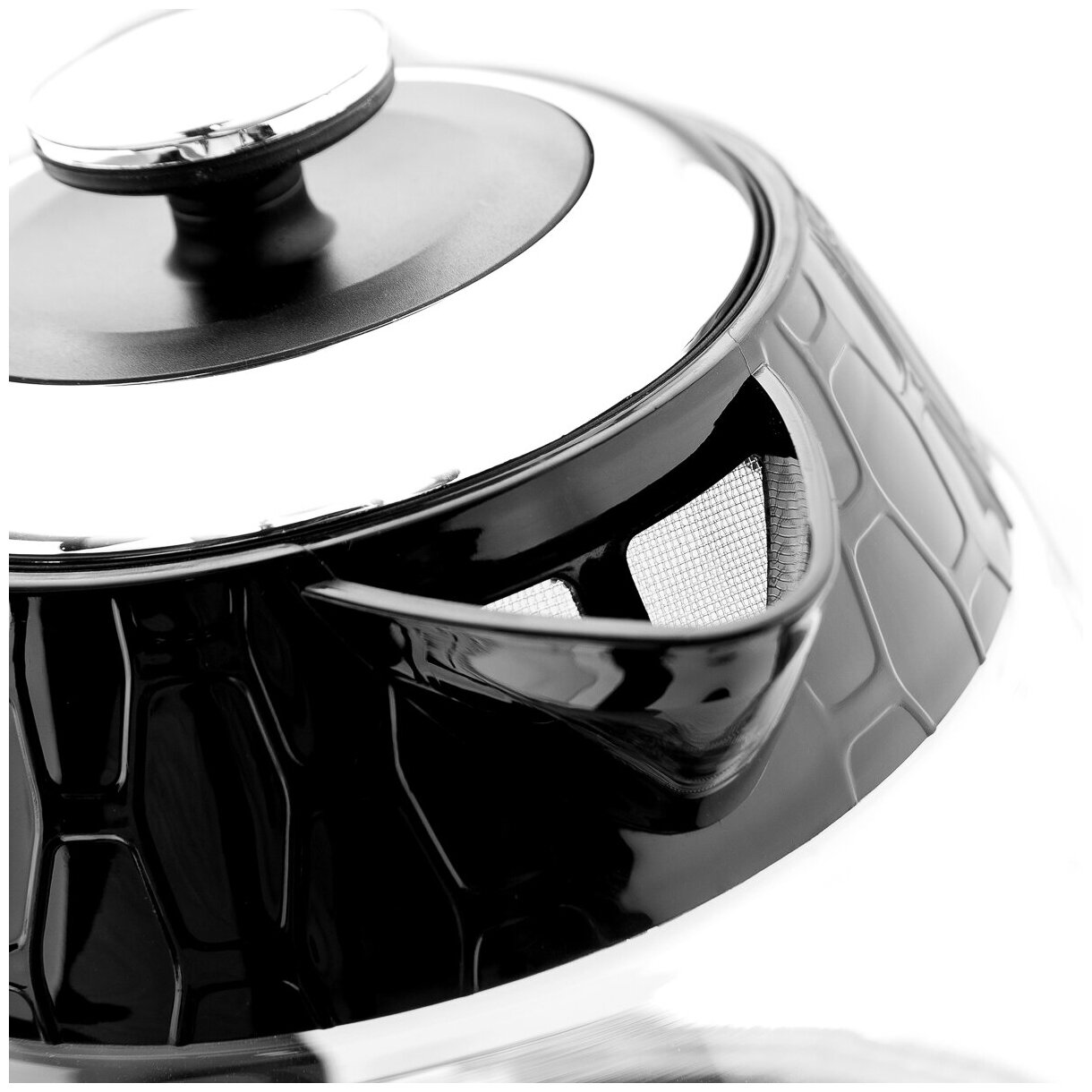 Основные характеристики: Цвет товара: черный: Тип: чайник: Объем: 1.7 л: Мощность: 2200 Вт: Тип нагревательного элемента: закрытая спираль: Подсветка: есть: Безопасность: блокировка включения без воды: Дополнительные характеристики: Особенности: вращение на 360 градусов, съемная крышка: Материал корпуса: пластик/стекло;