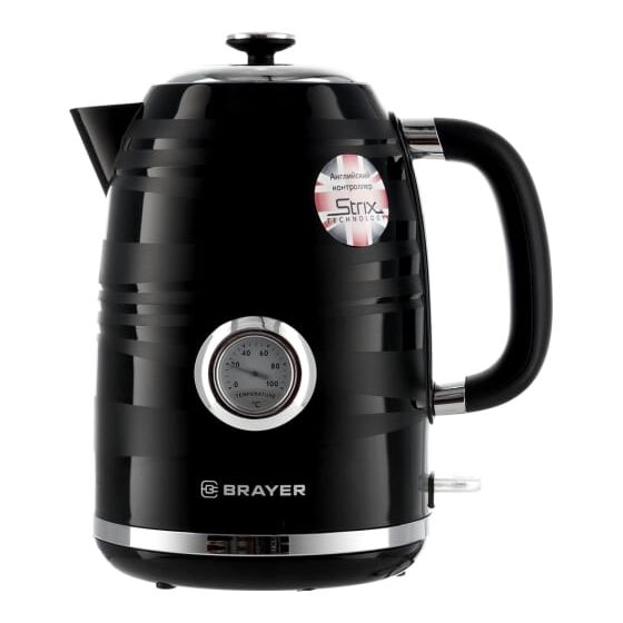 Электрический чайник BRAYER 1059BR 2200 Вт 1,7 л STRIX пластиковый корпус термометр BR1059 предназначен для использования в офисе или дома.: Хорошо держит температуру, благодаря чему вода дольше остается горячей.: Современный дизайн впишется в любой интерьер.: Чайник не ржавеет, за счет чего прослужит долго.: Технические характеристики чайника BRAYER 1059BR BR1059: Объем: 1.7 л: Тип управления: механический: Мощность (Вт): 2200: Материал корпуса: пластик: Цвет корпуса: черный: Фильтр от накипи: есть: Фильтр в носике: есть: Защита от включения без воды: есть: Подсветка воды: нет: LED-индикатор работы: да: Диаметр: 17.5 см: Высота: 21 см: Вес нетто: 1 кг: Тип крышки: съемная: Регулировка температуры нагрева воды: нет: Поддержание температуры: нет: Отключение при снятии с подставки: да: Отложенный старт: нет: Мерная шкала: да: Вращение на подставке: да: Звуковой сигнал: нет: Встроенный заварник: нет: Рисунок на корпусе: нет: Дисплей: нет;