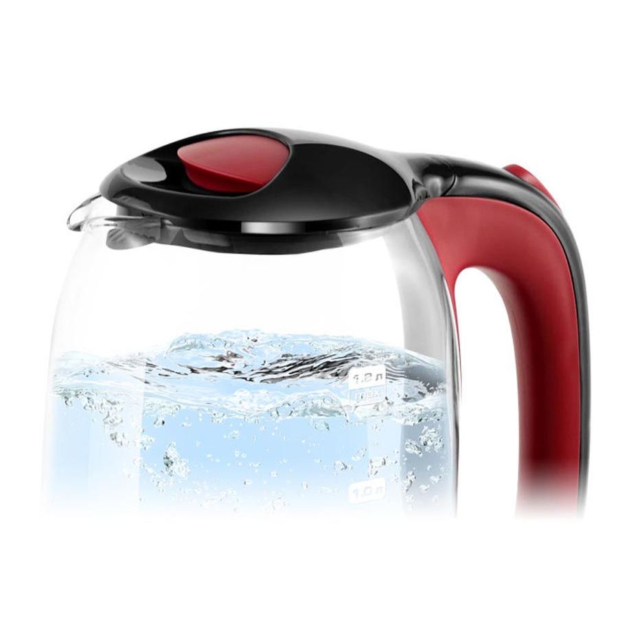 Технические характеристики Тип чайник Объем1.8 л Мощность 2200 Вт Тип нагревательного элемента закрытая спираль Материал корпусапластик/стекло Особенности Безопасностьблокировка включения без воды Индикатор уровня водыесть Подсветка воды при работеесть Отсек для шнураесть