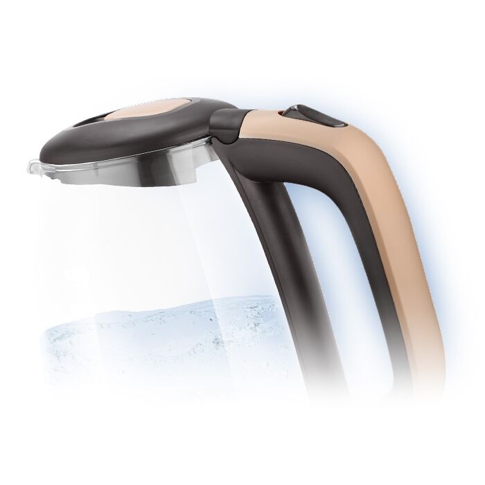 Мощность - 2200 Вт : Объем - 1,7 л : Внутренняя LED-подсветка ✓ : Защита от включения без воды ✓ : Автоматическое выключение ✓ : Скрытый нагревательный элемент ✓ ;