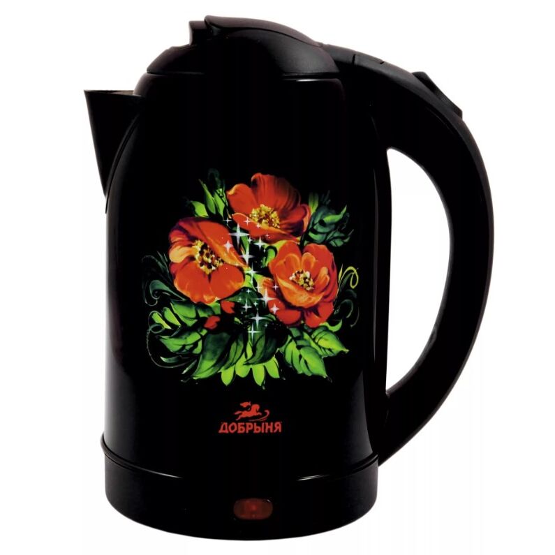 Металлический корпус, скрытый нагревательный элемент, отличная вместительность – это основные достоинства, которые характерны для электрического чайника Добрыня DO-1215. О том, что чайник работает, вам подскажет специальный индикатор, который загорается при включении устройства. Чайник Добрыня дополняется удобной подставкой, которая не требует определенного положения техники.: Технические характеристики:: -объем 2л : -материал корпуса: нержавеющая сталь -мощность 2000 Вт : -автоотключение при закипании и отсутствии воды: -закрытый нагревательный элемент: -поворот на подставке на 360 градусов: -световой индикатор работы: -наличие места для хранения шнура: -напряжение: 230 В, 50 Гц;