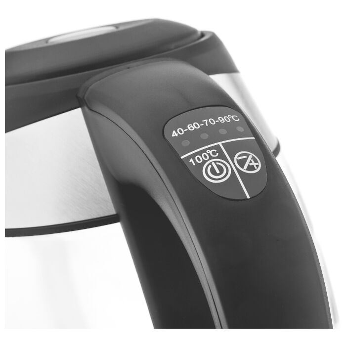 Технические характеристики Тип чайник Объем 1.8 л Мощность 2200 Вт Тип нагревательного элемента закрытая спираль Материал корпуса металл/стекло Особенности Безопасность блокировка крышки, блокировка включения без воды Фильтр есть Терморегулятор есть, ступенчатый, температурных режимов – 2, 60 – 100 град. Функции индикация включения, поддержание тепла Индикатор уровня воды есть Подсветка воды при работе есть