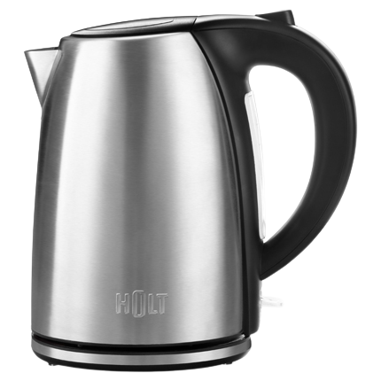 Электрический чайник Holt объемом 1.7 л оснащён традиционной системой открытия крышки. Эргономичная ручка, закрытый нагревательный элемент сделают эксплуатацию прибора еще проще и комфортнее. Классический цвет корпуса в сочетании с металлической декорацией позволит прибору вписаться в любой интерьер кухни. Данная модель имеет евровилку.: Основные характеристики: : ✅ Тип: электрочайник: ✅ Нагревательный элемент: закрытая спираль: ✅ Покрытие нагревательного элемента: нержавеющая сталь: ✅ Объем: 1.7 л: ✅ Мощность: 2200 Вт (1850 ‒ 2200 Вт): ✅ Цвет: металлик, черный: ✅ Поддержание температуры (термопот): нет: ✅ Подсветка: нет: Конструкция: : ✅ Подставка: с возможностью вращения (на 360°): ✅ Материал корпуса: металл: ✅ Фильтр: есть: Функции: : ✅ Дисплей: нет: ✅ Индикация включения: есть: ✅ Индикация уровня воды: есть: ✅ Терморегулятор: нет: ✅ Блокировка включения без воды: есть: ✅ Длительное/повторное кипячение: нет: ✅ Функция самоочистки: нет: ✅ Таймер: нет;