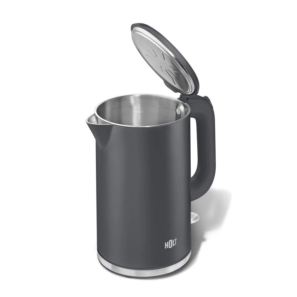 Основные характеристики : Тип : электрочайник : Объем, в литрах : 1.7 : Потребляемая мощность, в Вт : 2200 : Нагревательный элемент : скрытый нагревательный элемент : Звуковой сигнал : Нет : Внутренняя подсветка : Нет : Шкала уровня воды : Да : Защита : от включения без воды; от перегрева : Фильтр от накипи в носике : Да : Электропитание : от сети : Страна-производитель : Китай : Управление : Тип управления : механический : Подставка с электронным управлением : Нет : Поддержание температуры : Нет : Терморегулятор : Нет : Управление с мобильного устройства : Нет : Отложенный старт : Нет : Автоотключение : Да : Корпус : Двойные стенки корпуса : Да : Бесшумное закипание : Да : Вращение на подставке на 360 градусов : Да : Цвет : серый : Материал : металл; пластик : Комплектация : Комплект поставки : чайник электрический; поворотная база 360°; инструкция; плотная картонная упаковка ;
