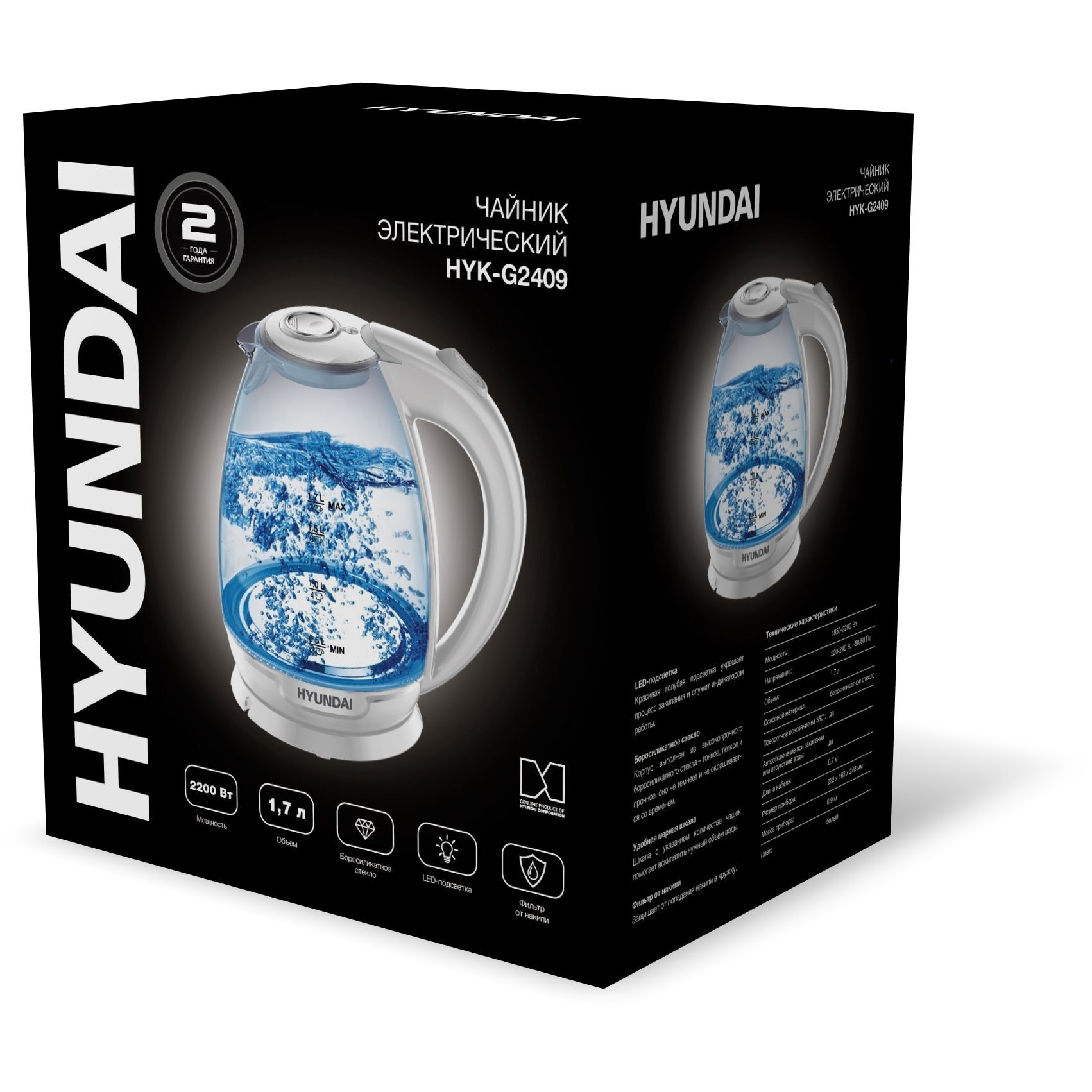 Чайник электрический Hyundai HYK-G2409 белый/серебристый