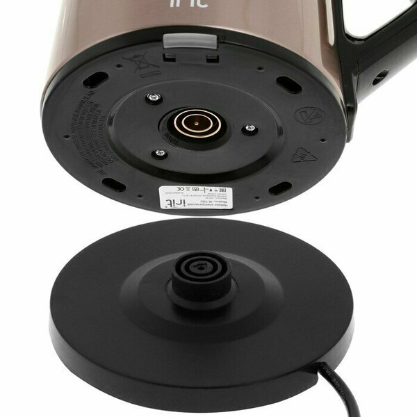 Чайник электрический, Мощность 1500 Вт, 1,8 л. Дисковый нагревательный элемент, корпус из нержавеющей стали, возможность поворота чайника на подставке 360°, автоотключение при вскипании, защита от работы без воды, световой индикатор работы. : Объем: 1.8 л : Тип управления: механический : Дистанционное управление: нет : Мощность (Вт): 1500 : Материал корпуса: нержавеющая сталь, пищевой пластик : Цвет корпуса: бежевый, черный : Палитра: черный : Фильтр в носике: нет : Нагревательный элемент: закрытый тэн/дисковый : Температурные режимы: 100 °С : Защита от включения без воды: да : Подсветка воды: нет : LED-индикатор работы: да : Тип крышки: механический : Регулировка температуры нагрева воды: нет : Поддержание температуры: нет : Отключение при снятии с подставки: нет : Отложенный старт: нет : Мерная шкала: нет : Вращение на подставке: да : Звуковой сигнал: нет : Встроенный заварник: нет : Рисунок на корпусе: нет : Дисплей: нет ;