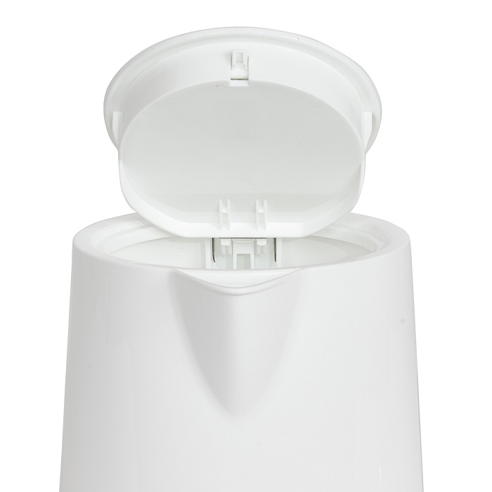 Основные характеристики: Цвет товара: белый: Тип: чайник: Объем: 1.7 л: Мощность: 2200 Вт: Тип нагревательного элемента: закрытая спираль: Безопасность: блокировка включения без воды, отключение при снятии с подставки: Дополнительные характеристики: Материал корпуса: пластик;