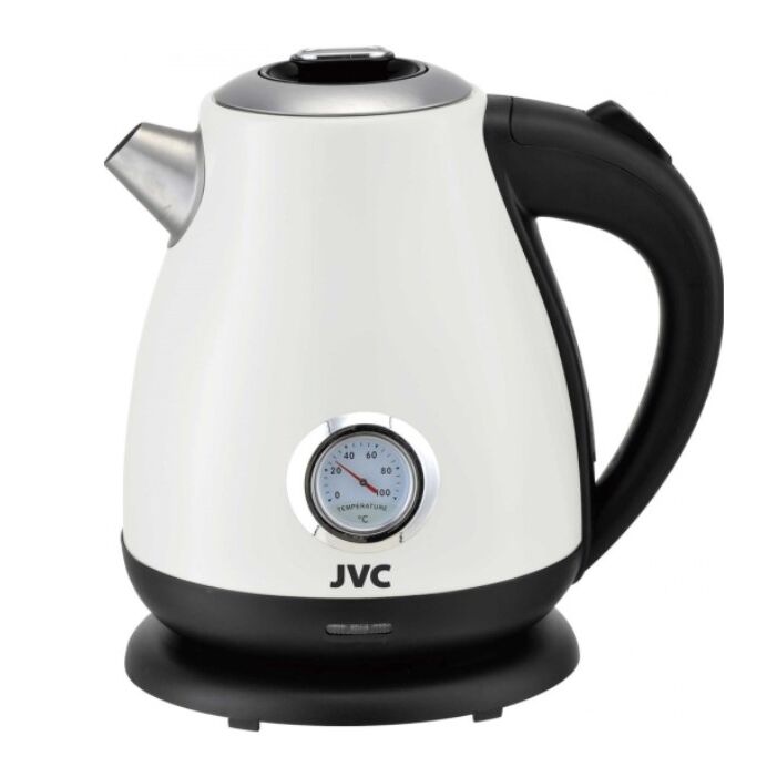 Стильный электрический чайник JVC JK-KE1717 из нержавеющей стали с датчиком температуры нагрева воды станет оригинальным украшением Вашей кухни и прекрасным подарком друзьям и родственникам. КЛЮЧЕВЫЕ ХАРАКТЕРИСТИКИ: внутренний объем: 1,7 л; потребляемая мощность: 2200 Вт; датчик температуры нагрева воды.; ОСОБЕННОСТИ И ПРЕИМУЩЕСТВА: корпус из нержавеющей стали; стильный дизайн обтекаемой формы; аналоговый датчик температуры нагрева воды; подставка с возможностью вращения на 360 градусов; индикатор уровня воды; съемная крышка для легкой очистки; съемный фильтр от накипи; хранение электрошнура (72 см) в подставке.: СИСТЕМЫ ЗАЩИТЫ: защита от включения без воды; автоматическое отключение. Качественный современный чайник JVC станет полезным приобретением для дома или дачи.; Характеристики Тип:Чайник Управление:Кнопочное управление Управление со смартфона:нет Объем:1.7 л Мощность:2200 Вт Материал корпуса:нержавеющая сталь Цвет:белый Выбор температуры нагрева воды:нет Индикация уровня воды:есть Фильтр:есть Двойные с