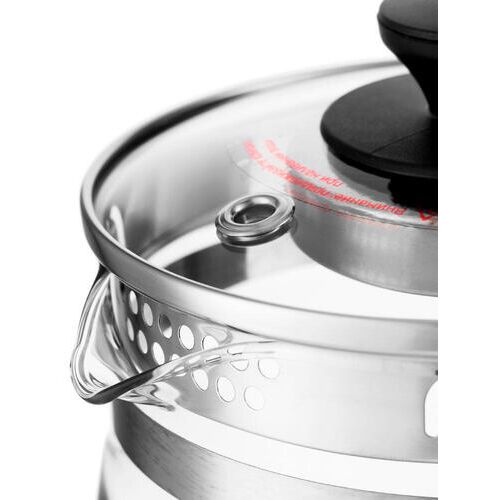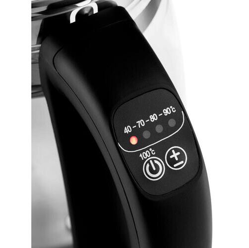 Общие параметры: Тип электрочайник: Основной цвет серебристый: Дополнительный цвет черный: Основные характеристики: Объем 1.7 л: Мощность 2200 Вт: Материал корпуса термостойкое стекло: Двойные стенки корпуса нет: Тип нагревательного элемента скрытый нагревательный элемент: Покрытие нагревательного элемента нержавеющая сталь: Внутренний заварник есть: Фильтр в носике нет: Материал фильтра без фильтра: Управление со смартфона нет: Приложение для управления нет: Голосовой помощник нет: Комфорт: Поддержание температуры есть: Максимальное время поддержки температуры 120 мин: Терморегулятор есть: Температура нагрева воды (C) 40°, 70°, 80°, 90°, 100°: Шкала уровня воды есть: Индикация индикация температуры: Подсветка есть: Цвет подсветки красный, синий, зеленый, желтый, фиолетовый: Подставка с электронным управлением нет: Вращение на подставке есть: Наличие заварника нет: Длина сетевого шнура 0.7 м: Автоматическое отключение есть: Особенности крышки полностью съемная крышка: Звуковой сигнал при достижении заданной т
