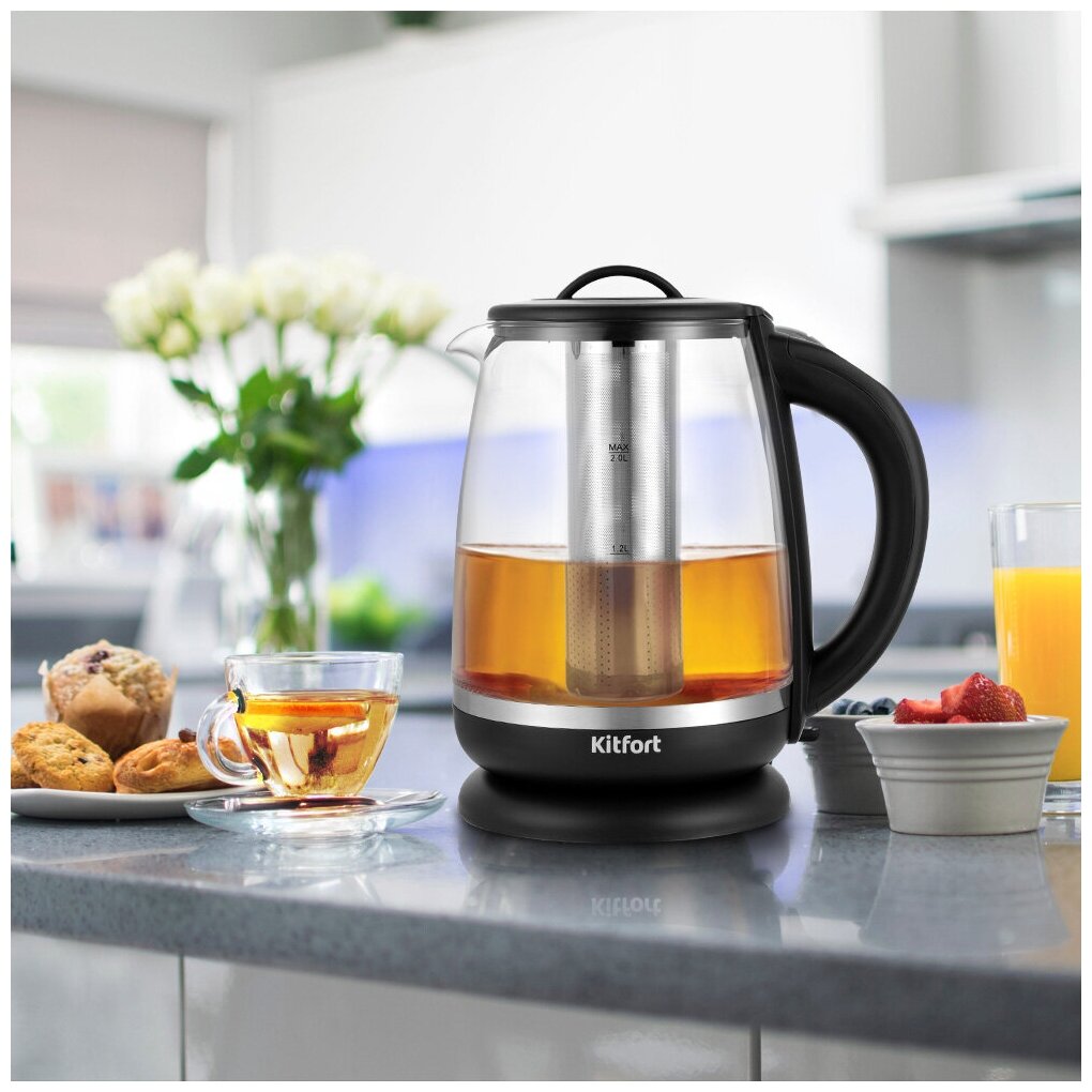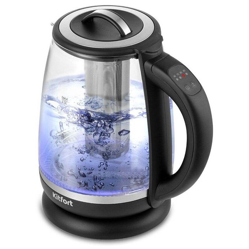 Бренд: KITFORT: Модель: КТ-6145: Мощность: 2200 Вт: Максимальный объем: 2 л: Нагревательный элемент: скрытый: Особенности: Дополнительные возможности: Съёмный фильтр для заваривания чая.: Индикатор включения: есть: Индикатор уровня воды: есть: Автоматическое отключение: есть: Регулировка температуры нагрева: есть: Температурные режимы: 5 шт: Подставка 360 градусов: да: Защита от включения без воды: есть: Подсветка воды: есть: Цветовая индикация температуры воды: есть: Поддержание температуры воды: есть: Корпус: Материал корпуса: стекло/металл/пластик: Цвет: черный: Вес товара: 1.1 кг: Упаковка: Габариты упаковки (ед) ДхШхВ: 0.221x0.188x0.25 м: Вес упаковки (ед): 1.433 кг: Страна производства: Страна производства: Китай;