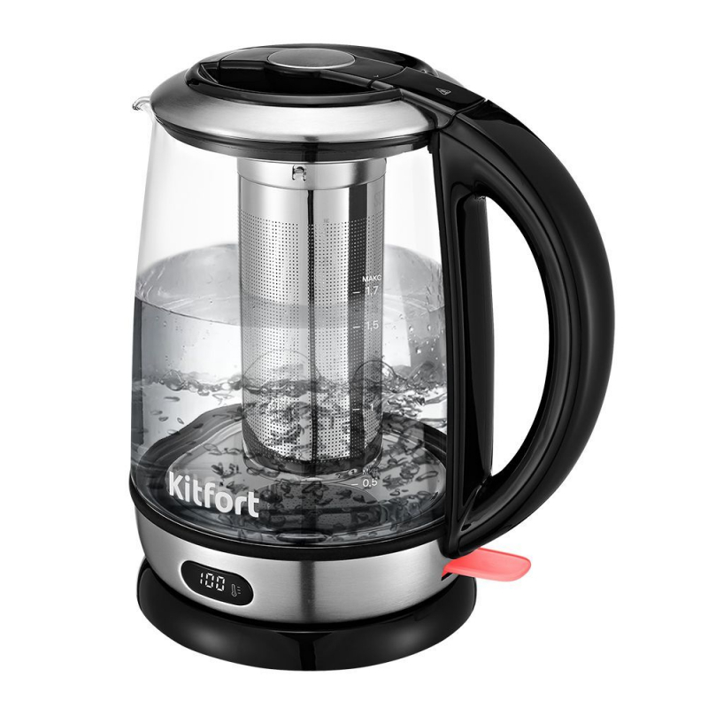 Бренд: KITFORT: Модель: КТ-6155: Описание: Электрический чайник КТ-6155 может не только вскипятить воду, но и нагреть её до температур: 70, 80, 85, 90, 95 и 100°С. Возможность выбрать температуру нагрева в сочетании с встроенным фильтром позволяют заваривать любимые сорта чая прямо в чайнике.: Мощность: 2200 Вт: Максимальный объем: 1.7 л: Нагревательный элемент: скрытый: Особенности: Индикатор включения: есть: Индикатор уровня воды: есть: Автоматическое отключение: есть: Регулировка температуры нагрева: есть: Температурные режимы: 6 шт: Дисплей: есть: Кнопка открытия крышки: есть: Подставка 360 градусов: да: Защита от включения без воды: есть: Поддержание температуры воды: есть: Звуковой сигнал при закипании: есть: Корпус: Материал корпуса: пластик/стекло и нержавеющая сталь: Цвет: черный: Вес: 1.3 кг: Упаковка: Габариты упаковки (ед) ДхШхВ: 0.27x0.195x0.26 м: Вес упаковки (ед): 1.95 кг;