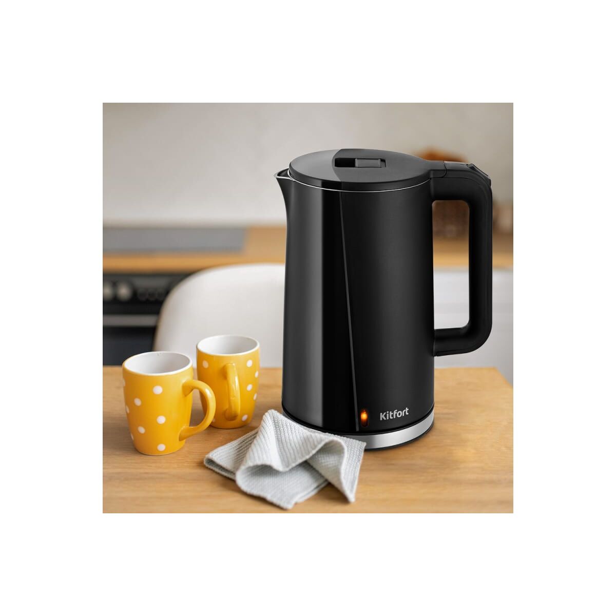 В хорошем чае души не чаю! Электрический чайник Kitfort КТ-6612 предназначен для кипячения воды дома, в офисе, на даче. Полный чайник закипает примерно за 6 минут. Ёмкость 1,7 л. Удобство во всём! Корпус и крышка чайника изнутри выполнены из нержавеющей стали, а снаружи — из пластика. Максимальная отметка нанесена на внутреннюю часть корпуса. КТ-6612 имеет большое горлышко, что облегчает доступ внутрь при мытье. Простое управление Управление осуществляется с помощью кнопки «Вкл/Выкл», которая расположена на ручке. При включении чайника загорается индикатор нагрева. Ручка чайника пластиковая, не нагревается и удобно лежит в руке. Без лишних проводов Подставка с центральным контактом дает возможность располагать на ней чайник в любом положении, обеспечивая вращение на 360°. Снизу имеется отсек для хранения шнура, в который можно смотать излишки шнура электропитания, чтобы он не мешал на столе. Чистка и обслуживание Для увеличения срока службы чайника своевременно удаляйте накипь. Поместите в чайник специальное