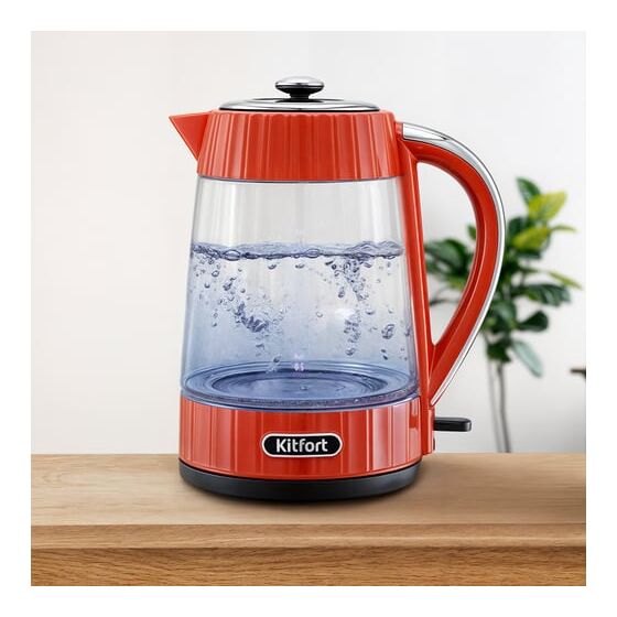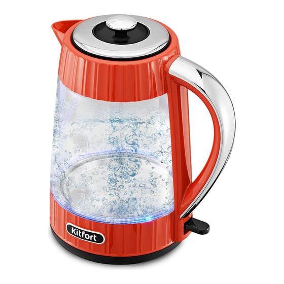 Электрический чайник Kitfort КТ-6709 предназначен для кипячения воды дома, в офисе, на даче.: Корпус чайника выполнен из сочетания стекла и пластика.Ручка чайника сделана из пластика, она не нагревается и удобно лежит в руке. Кнопка включения расположена под ручкой. При включении загорается индикатор, встроенный в корпус.: Подставка с центральным контактом дает возможность располагать на ней чайник в любом положении, обеспечивая вращение на 360°. Снизу имеется отсек для хранения шнура, в который можно смотать излишки шнура электропитания, чтобы он не мешал на столе.: Чайник автоматически отключается при закипании, имеет защиту от перегрева и от включения без воды.: При закипании воды образующийся пар попадает в паропровод, проходит по нему и затем воздействует на термодатчик, который отключает чайник. Такая конструкция позволяет чайнику отключаться при закипании воды независимо от альтитуды (высоты над уровнем моря). Как известно, атмосферное давление уменьшается с увеличением высоты над уровнем моря, а темпе