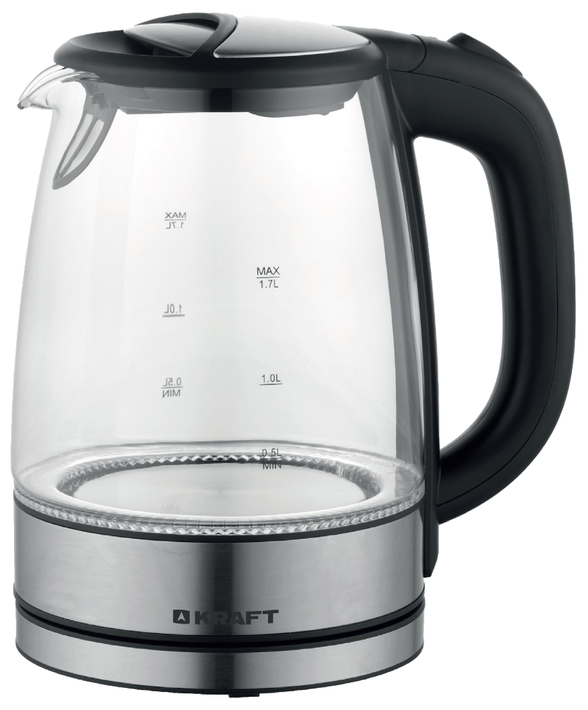 объем: 1.7 л; материал корпуса: металл/стекло; мощность: 2200 Вт; тип нагревательного элемента: закрытая спираль; вес: 1.2 кг