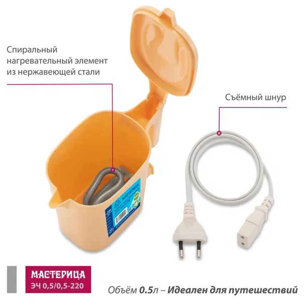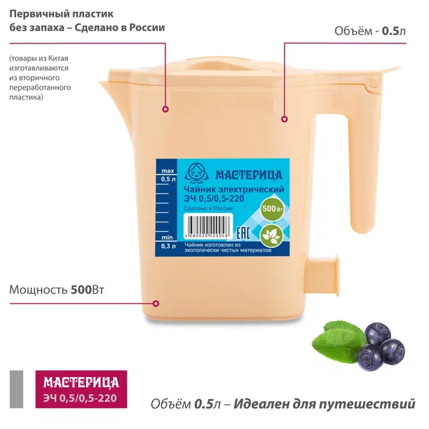 тип: чайник, материал корпуса: пластик, объем: 0.50 л, тип нагревательного элемента: открытая спираль