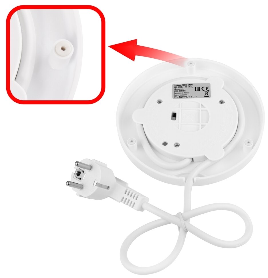 - Безопасность: отключение при снятии с подставки, блокировка включения без воды