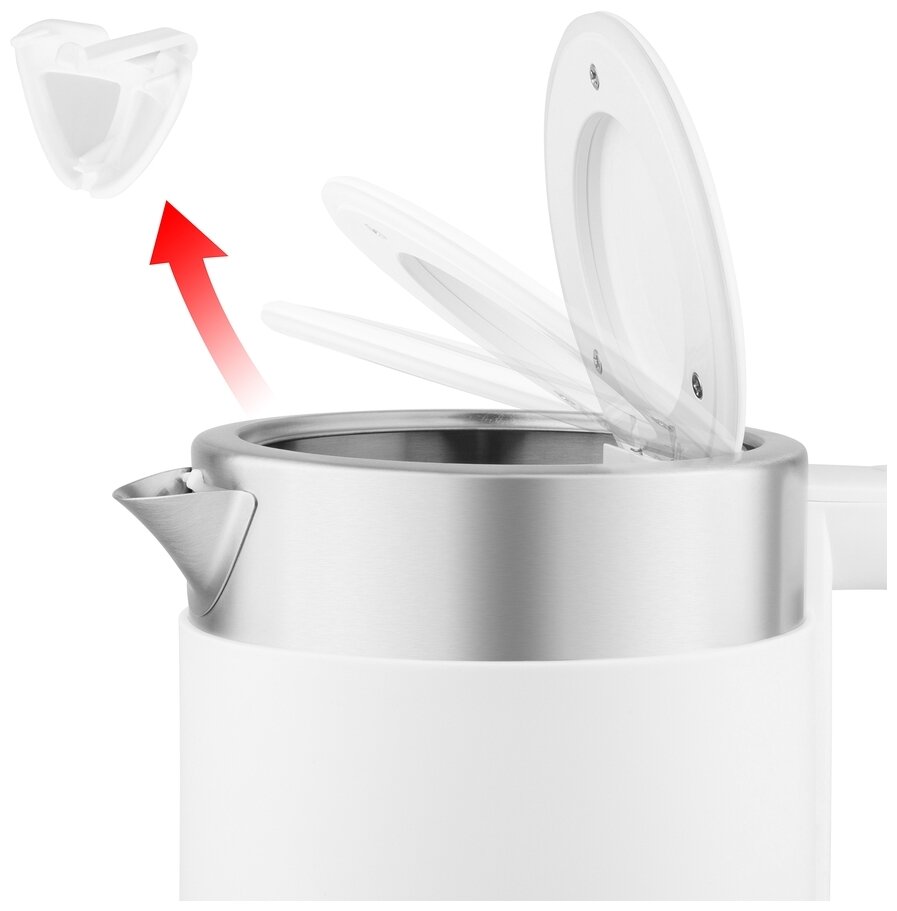 тип: чайник, материал корпуса: пластик, объем: 1.70 л, тип нагревательного элемента: закрытая спираль, особенности: двойные стенки, вращение на 360 градусов, индикатор уровня воды, фильтр, индикация включения, отсек для хранения шнура