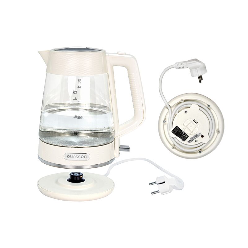 Электрический чайник KE1747G Oursson объёмом 1,7 л имеет прозрачную колбу из термостойкого стекла и удобную шкалу уровня воды, что позволяет контролировать кипячение воды на любом этапе. Яркая внутренняя подсветка колбы делает этот процесс еще более увлекательным. Скрытый дисковый нагревательный элемент обеспечивает равномерный и быстрый нагрев воды. Вращение чайника вокруг своей оси позволяет устанавливать его на пластиковую подставку в любом положении. Крышка оснащена автоматической системой открывания в одно касание. Для хранения шнура предусмотрен специальный отсек. Безопасность эксплуатации электрического чайника KE1747G обеспечивает встроенная защита от включения без воды. Надежный контроллер STRIX гарантирует долговечную эксплуатацию прибора. Мощность прибора - 2200 Вт. : Объём, л: 1,7 : Материал корпуса: стекло : Измерительная шкала: да : Потребляемая мощность, Вт: 2200 : Автоматическое отключение: да : Защита от включения без воды: да : Высота изделия, мм: 242 : Ширина изделия, мм: 216 : Глубина изде