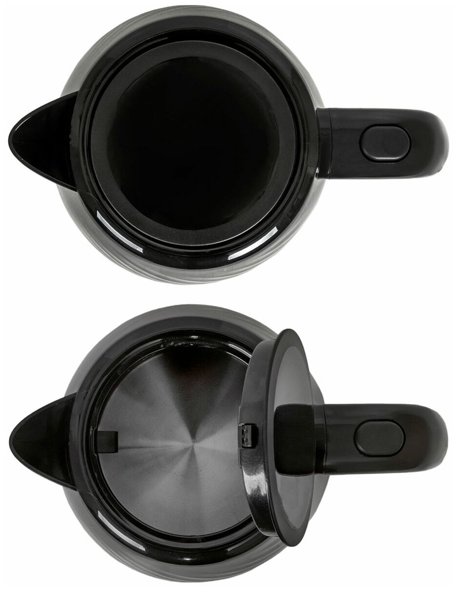 - Безопасность: блокировка включения без воды, отключение при снятии с подставки